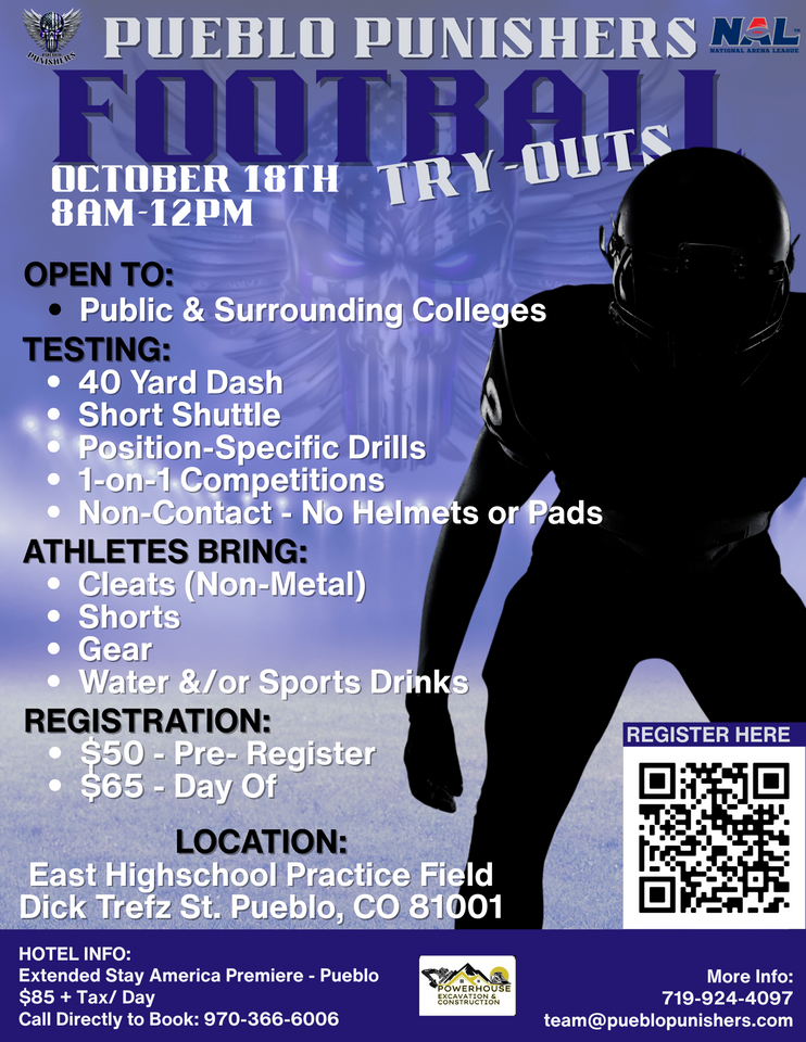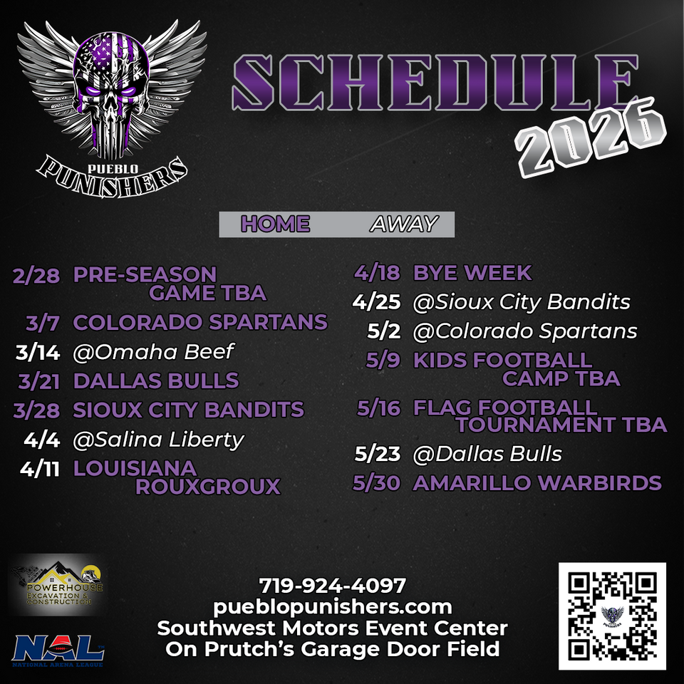 News Slider{{widget.isRotating ? 'pause_circle' : 'play_circle'}}Pueblo Punishers Announce Exciting 2026 Schedule Read More Tryouts Announced! Read More Pueblo Punishers Announce Exciting 2026 ScheduleTryouts Announced!